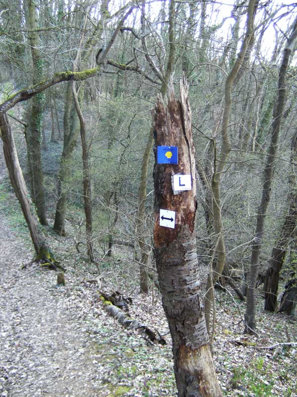 So langsam hatte ich auch schon fast meine Ausrüstung zusammen und habe am Samstag, den 29. März meinen ersten großen Marsch gemacht. ich bin über Weyer nach Villmar und Runkel nach Ennerich gelaufen. Nicht auf den sonst von mir genutzten Wegen sondern auch mal abseits. Hier stelle ich zu meiner großen Freude fest, dass ich bereits auf einem Jakobsweg (Bild) laufe. Ich bin dann über Ennerich und Lindenholzhausen wieder nach Hause gelaufen. Über 25 Kilometer ohne jegliche Probleme.