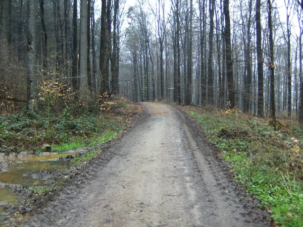 Abends radele ich nochmals nach Selters, um einen neuen Fußweg für Freitagstrimmer zu finden. Leider war der Wald durch die Waldarbeiter ziemlich durchwühlt und auch sehr matschig und ich kann keinen schönen Weg finden.