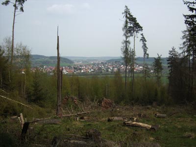 Wie geplant bin ich heute Morgen um 8:30 Uhr mit dem Zug nach Niedernhausen gefahren. Ich hatte mir zuerst überlegt im Tal über Idstein und Bad Camberg zurückzulaufen. Doch mir schien eine Bergetappe sinnvoller. Ich bin von Niedernhausen nach Königshofen zur Hohen Kanzel. In Königshofen fragte ich einen Anwohner nach dem Weg, der wies mich darauf hin, dass die Wege im Wald nicht passierbar seien. Ich bin aber dann trotzdem durch den Wald gegangen. Unterwegs traf ich zwei Jogger die mich auf den schlechten Weg hinwiesen, die umgefallenen Bäume seien aber schon beseitigt. Hinter der Autobahn stieg der Weg dann weiter an, war aber noch sehr gut. Ich hörte ein Geräusch hinter mir. Ein Geländewagen kam hinter mir den Berg rauf. Er hielt neben mir, das Fenster ging herunter und ein Mann in Jagduniform fragte mich: „Gehe ich recht in der Annahme, dass Sie nicht ein Stück mitgenommen werden wollen?“ „Nein, ich bin noch gut zu Fuß!“ war meine Antwort, an die ich gleich die Frage hängte: „Wie komme ich am besten zur Hohen Kanzel?“ „Sie gehen hier den Weg weiter zum Ziegenkopf, hier beginnt meine Revier, und oben gehen Sie dann nach rechts dann ist es nicht mehr weit“, bekam ich zur Antwort. Als ich ihm zum Dank ein „Waidmannheil“ wünschte, meinte er verschmitzt: „NEIN! Es ist doch Schonzeit und außerdem sind wir Jäger nicht nur am schießen. Einen guten Weg noch“. Er gab Gas und war nach kurzer Zeit nicht mehr zu sehen. Nach etwa 5 Minuten kam ich an seinem Auto vorbei, wo er auf mich wartete und mich noch mal auf die nächste Kreuzung hinwies, damit ich ja nach rechts gehe.