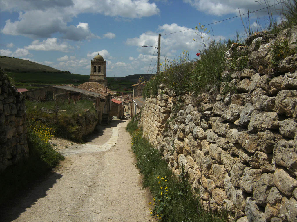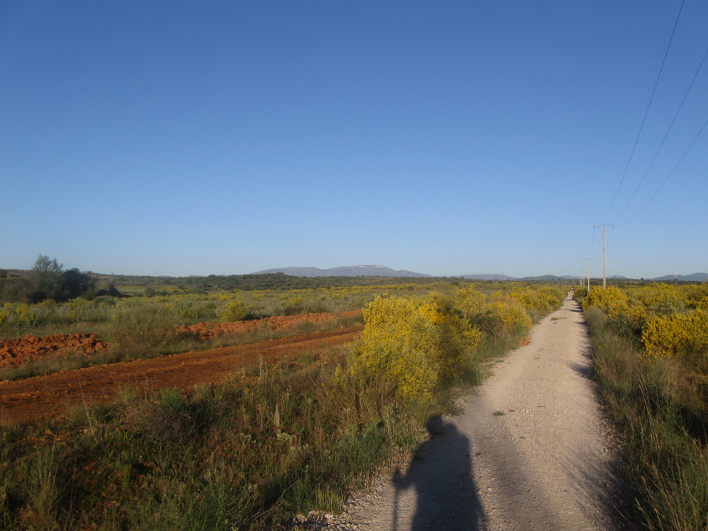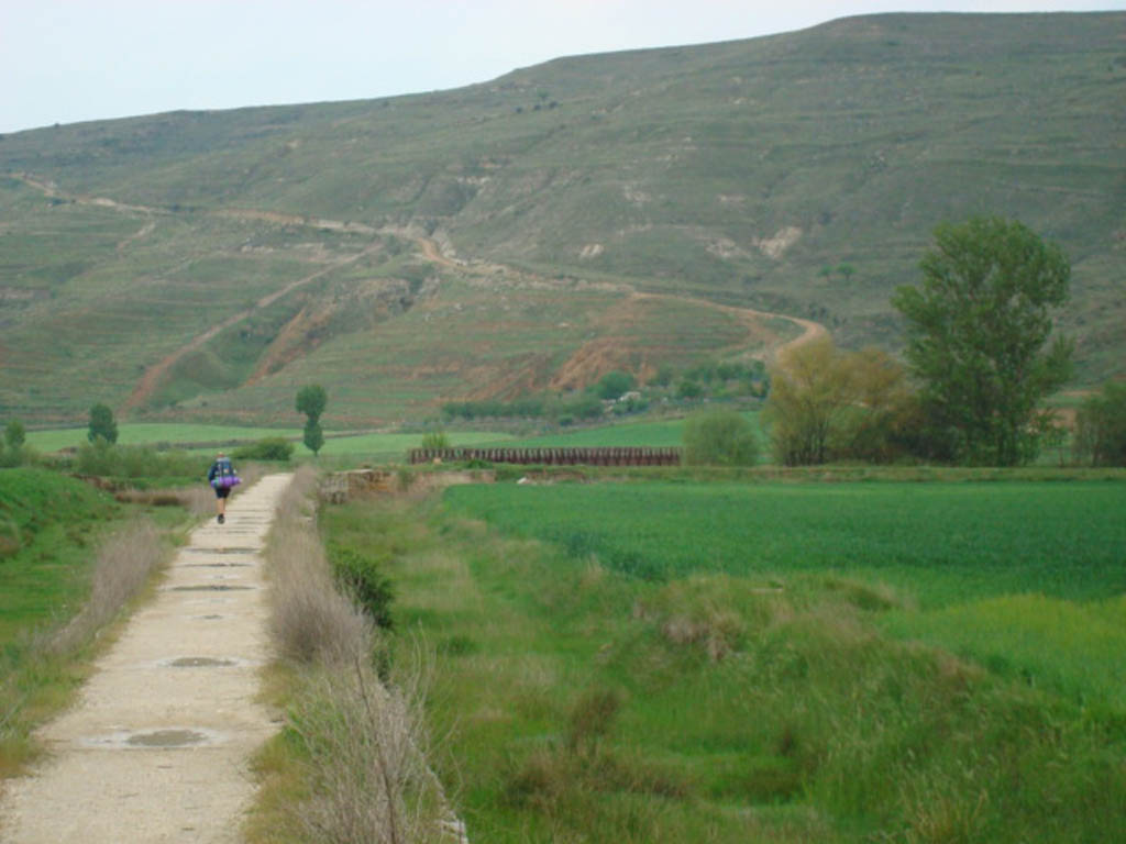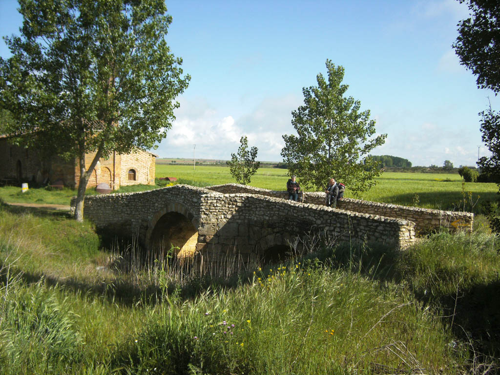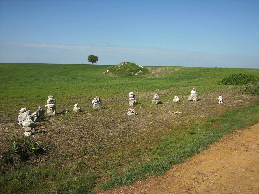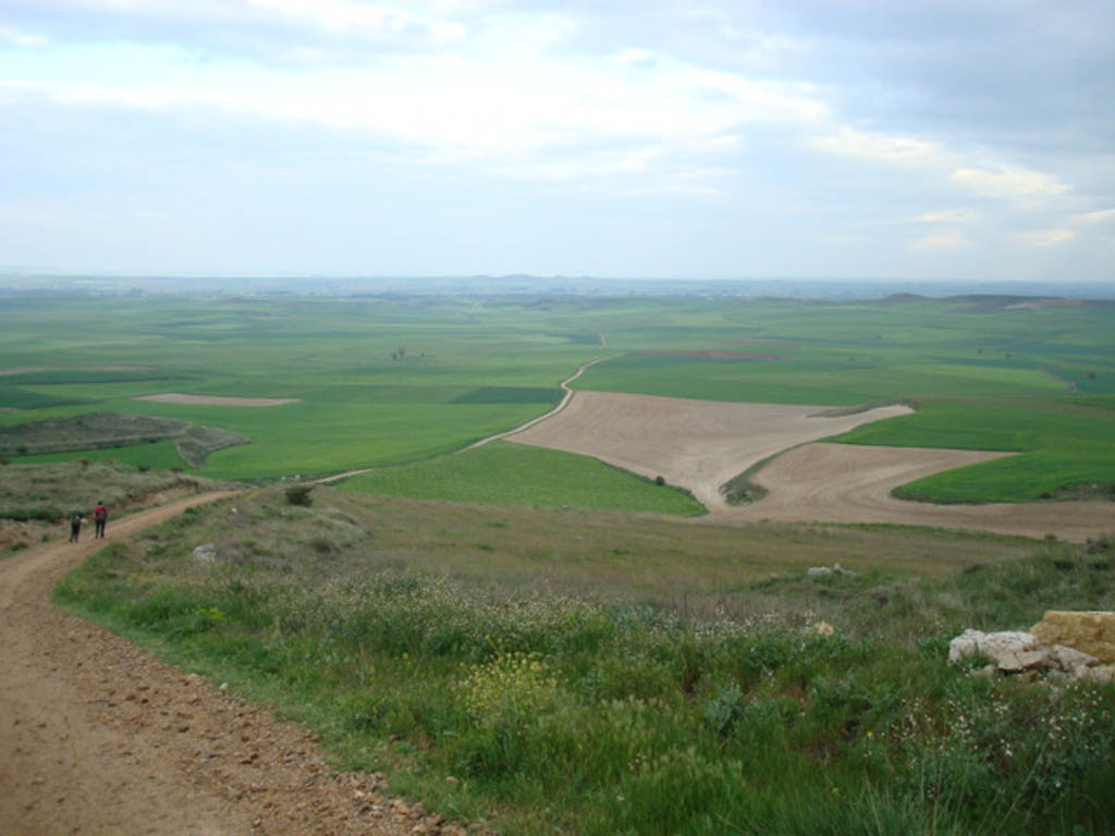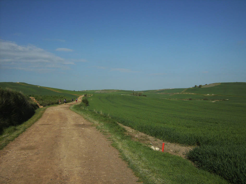 Hier nun ein Zitat aus dem Reiseführer: Rund 1/4 Std, nach der Abtei beginnt die Via Aquitana, die sich schnurgerade durch die fast baumlose, mit Getreidefeldern kultivierte Ebene zieht. Nach rund 21/4 Std. kommt endlich der Kirchturm des Friedhofes von Calzadilla de la Cueza in Sicht, doch bis dahin dauert es noch immer eine lange 3/4 Std.