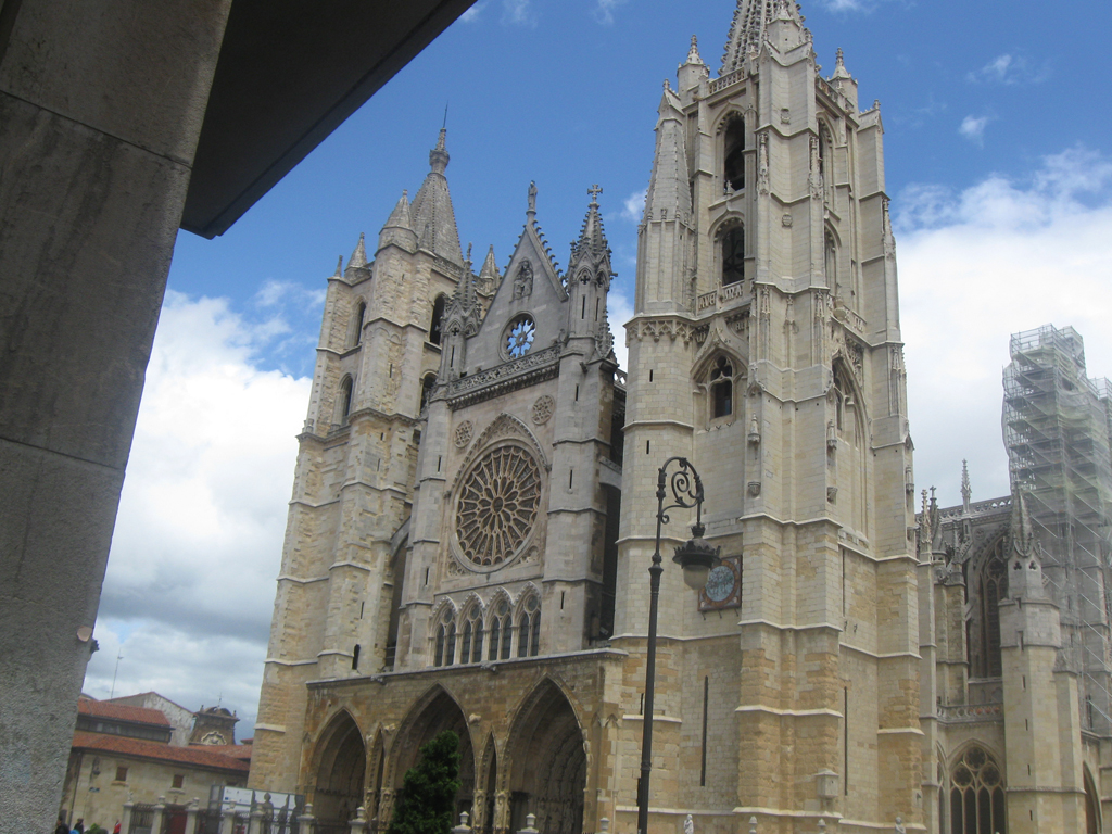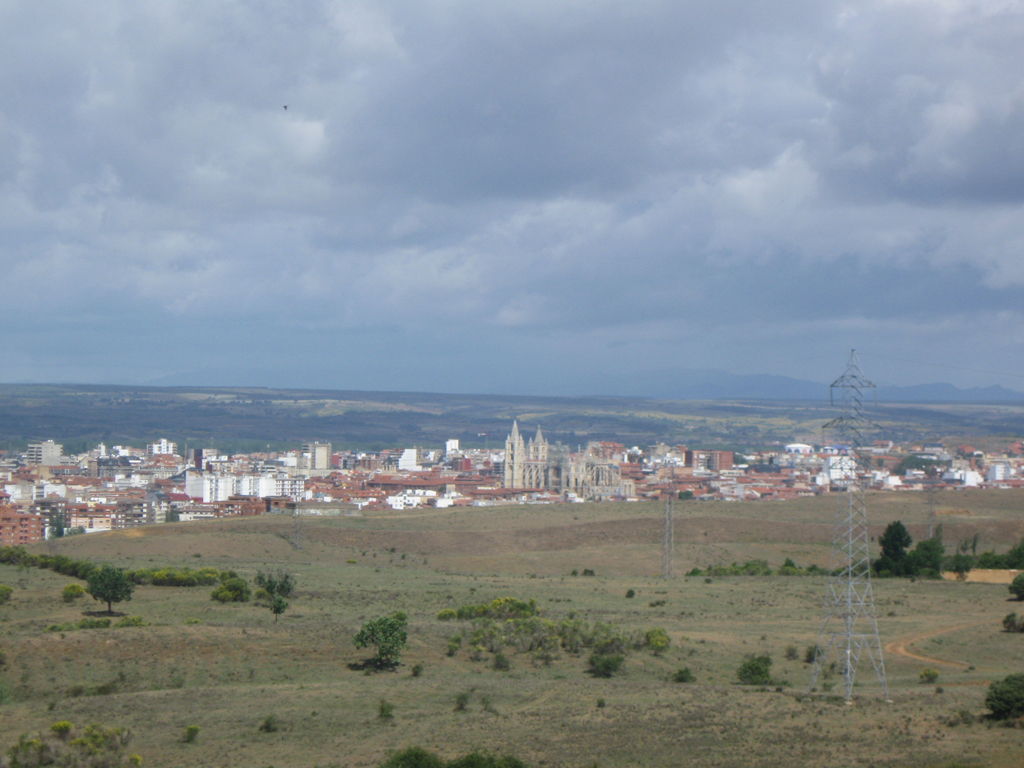 León war heute mein Ziel, dafür musste ich 24 km wandern, Davon eine Stunde im Regen, doch gegen 10:00 Uhr schien dann die Sonne. Das Laufen ist mir sehr schwer gefallen, ich hatte mir eine Blase zugezogen. Ich habe bei den Beneditinerinnen ein Bett in einem grossen Schlafsaal gefunden.