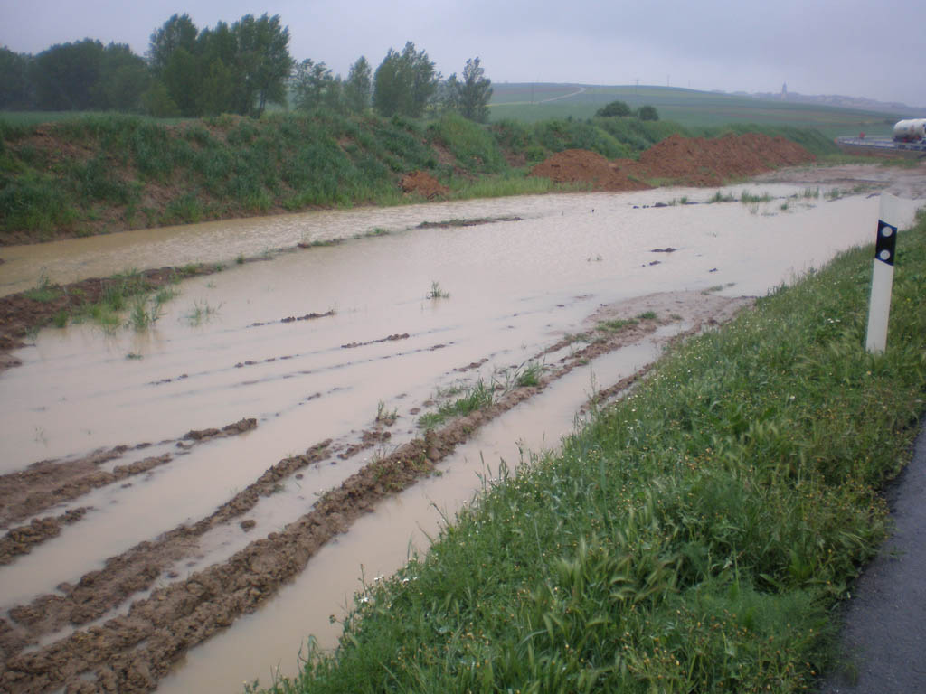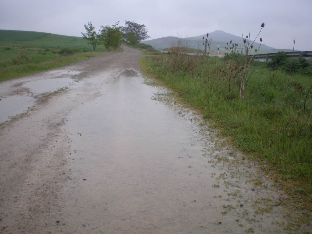 Der Ort ist sehr klein, hat aber einen Laden. Wir kaufen ein und wollen uns einen netten Platz zum Essen auf dem Weg zum nächsten Ort suchen. Wir verließen das Dorf. Kurz hinter den ersten Häusern fallen ein paar Tropfen. Ein kurzer Blick genügt, wir beide sind der Ansicht, dass jemand der Meinung ist, dass wir weitergehen sollen, also drehen wir um und gehen ins Dorf zurück, obwohl es eigentlich nicht nach Regen aussah.