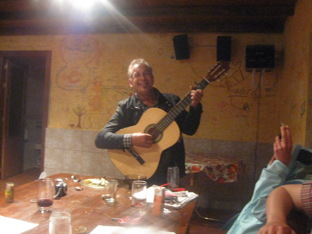 Der Wein war besser als von Andreas angekündigt, okay die Farbe war für einen Rotwein sehr dünn, eher rosé, aber der Geschmack war gut. Die Stimmung stieg und die Verständigung war immer besser. Wir haben immer wieder das Lied gesungen, Wein (wurde noch zwei mal nachgefüllt) getrunken und uns des Pilgerlebens erfreut. Sergio klagte über seine Ferse, er meinte er sei jetzt „Schuhmäker“ und zeigte uns seine Pumaschuhe: Er hatte kurzerhand die Ferse abgeschnitten. Magrit packte ihr Strickzeug aus und es wurde immer gemütlicher. Um 22:30 Uhr gingen wir alle sehr gut gelaunt ins Bett.