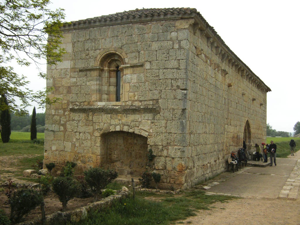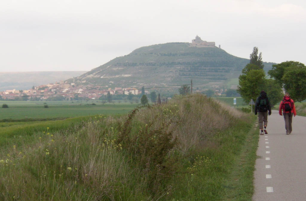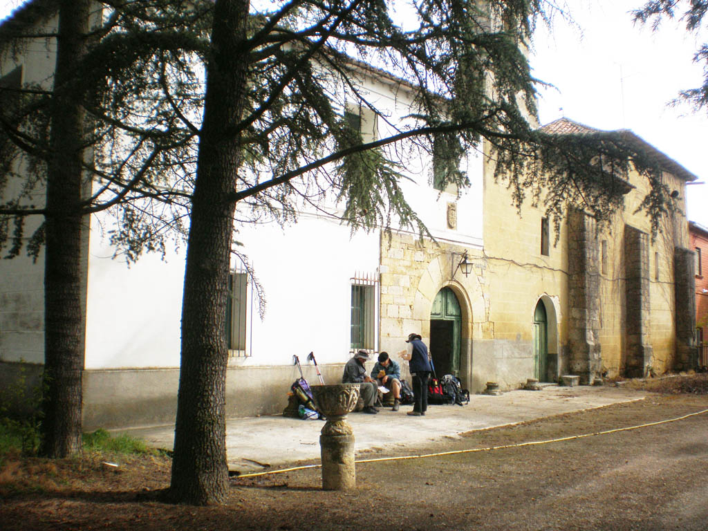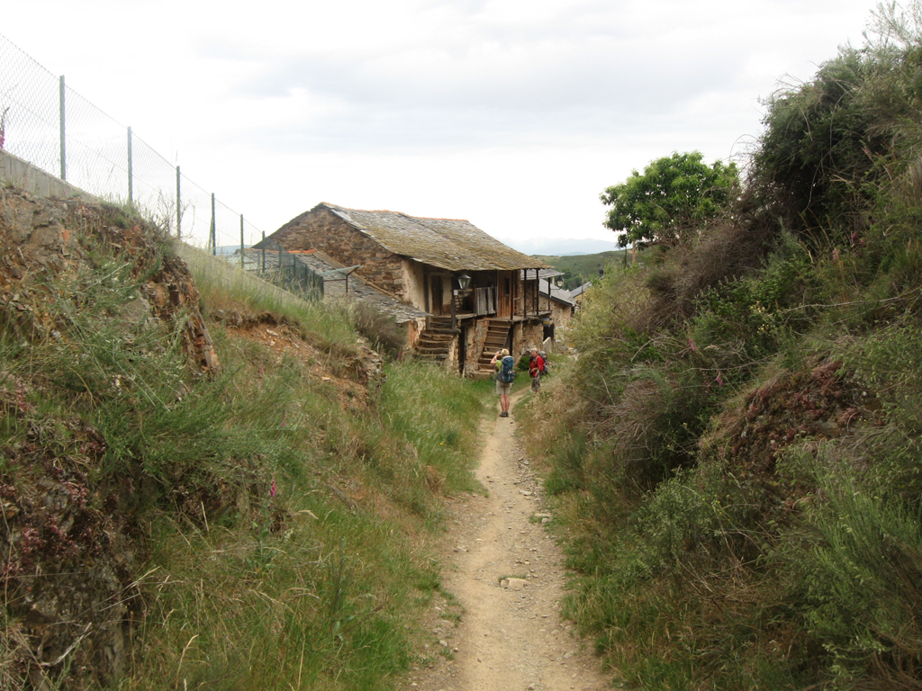 Am Ende des Ortes hat man einen guten Blick auf den 911 Meter hohen Tafelberg Alto de Mostelares. Wir gingen flott den steilen Anstieg, wurden aber trotzdem von der Schweizerin überholt. Nach zwei Stunden Wanderung, die meist leicht bergab ging kamen wir an ein historisches Pilgerhospital aus dem 13. Jahrhundert, das eine Kapelle, einen großen Essensbereich und einen Schlafbereich enthielt, dies alles in einem Raum. Es wirkte sehr historisch Nur eine viertel Stunde weiter begann der Ort