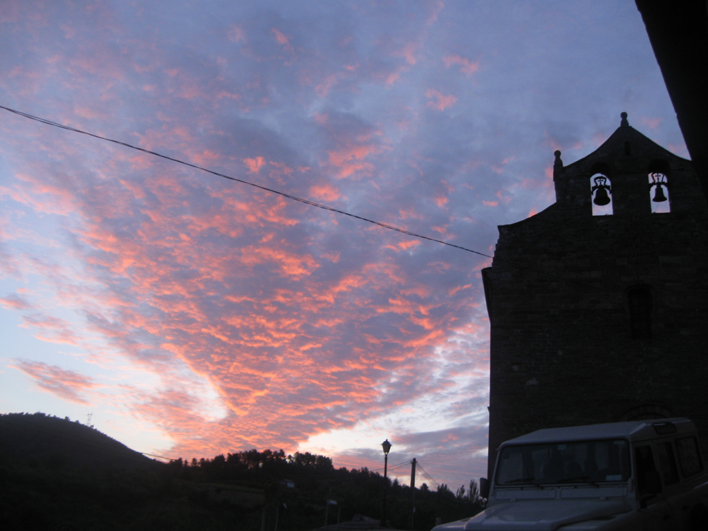 Bergab war der Weg beschwerlich und wir haben in El Acebo Quartier bezogen. Eine nette Herberge in der heute Abend gemeinsam gekocht wird. Angelo der Herbergsvater (sehr nett und freundlich) bringt die Sachen und teilt die Pilger zum Schnippeln und Kochen ein. Ich bin für den Salat zuständig (wird langsam zur Gewohnheit). Wir erleben einen schönen Sonnenuntergang.