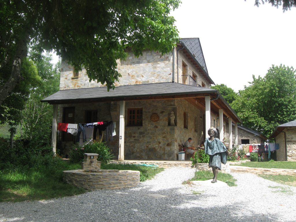 Der Weg von Astorga war sehr schön. es geht nun langsam aufwärts. Die Landschaft verändert sich. Ginster steht wieder am Wegesrand. Nach 3 Stunden mache ich eine Kaffeepause, hier holen mich meine Begleiterinnen aus Sylt wieder ein. Die Herberge in Rabanal wir erst um 14:00 Uhr geöffnet und wir warten im Schatten einer großen Kastanie, es sind heute 23º. Die beiden Damen aus der Pfalz, die ich gestern in der Herberge kennen lernte, treffen auch ein und so verbringen wir den Nachmittag zu fünft in dem schönen Garten. Ich bekomme meine Blase fachfraulich versorgt und wir bereiten das Abendessen gemeinsam nach dem wir in der Herberge zum 5:00 Uhr-Tee bewirtet wurden. Abends soll es einen Pilgersegen geben, doch die Patres des Klosters nebenan sind nicht da. Und der Laienbruder wurde beim Essen gestört und macht den Segen sehr lieblos und in Eile. So ist das halt wenn ein Bayer (aus St. Ottilien) beim Essen gestört wird.