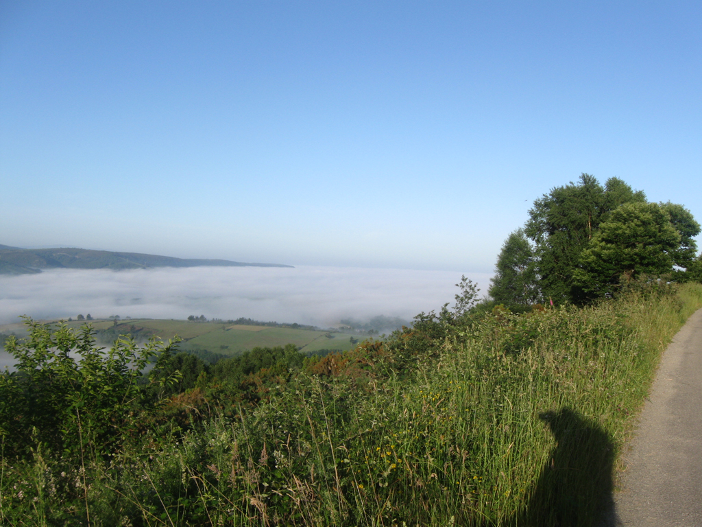 Von Villafranca ging der Weg über eine Brücke, danach Bergauf, da wir den Camino Duro, den harten Weg gewählt haben. Es ging mehr als 400 Höhenmeter bergauf und wir wurden mit einem der schönsten Ausblicke belohnt, die der Camino bieten kann. Auch der Weg durch einen Esskastanienwald war ein Erlebnis. Bergab ging es wieder ins Tal, wo wir an der Landstrasse entlanggingen an der Hape gegen die Lkws gekämpft hatte. Es war wirklich nervig und dauerte zu unserem Glück nur 5 km (wegen Camino duro). Es ging weiter bergauf und wir trafen auf 900 Meter Höhe in La Faba sehr abgekämpft ein. Wir haben uns ein Super Essen gekocht, ich laufe als Koch langsam zur Hochform auf. Meine Spaghetti mit Tomaten und Zwiebel, gewürzt mit Sardinen war vorzüglich. Wir hatten in der Kirche nebenan ein sehr bewegendes Abendgebet mit einem0spanischen Franziskanerpater.