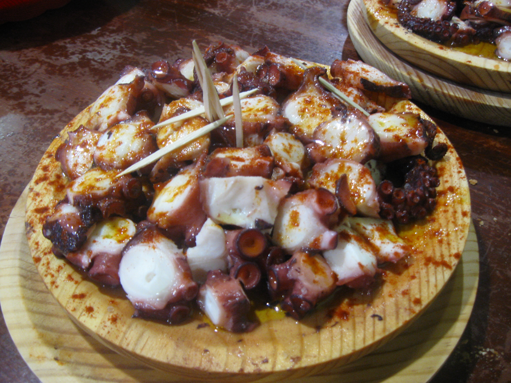 Die Sonne scheint schon ab 7:30 Uhr mit voller Kraft. Manchmal schieben sich ein paar Wolken dazwischen und es weht ein frischer Wind. Ich will mindestens bis zum Kilometerstein 57 kommen, dies ist meinen Begleiterinnen zu weit. Kurz nach erreichen dieses Steines, in der Bar "zu den 2 Deutschen" (heißt wirklich so), mache ich eine Pause und siehe da - sie kommen doch und wir gehen gemeinsam nach Merlide (Kilometer 51 (SPANISCH)). Hier gehen wir gemeinsam Abendessen. Wir geniesen gekochte Krake (Pulpo = kein Tintenfisch), es schmeckt uns allen sehr gut. Ein Cafe con leche und ein Besuch in der Kirche beschliest unseren Abend. Ein Wehrmutstropfen hat dieser Tag: Siggi aus Würzburg, mit dem ich in den letzten Tage mich immer mehr unterhalten habe, verliert seine Digicam, leider ist sie bisher nicht wieder aufgetaucht.