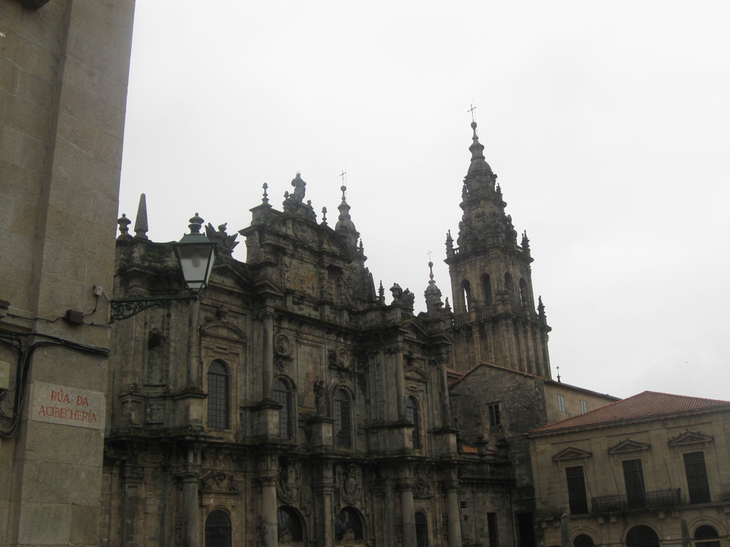 Heute ist es bewölkt, das passt zu meiner Stimmung. Wir gehen um 8:00 Uhr los und kommen um Punkt 9:00 Uhr vor der Kathedrale an. Ich fand wir sind viel zu schnell gegangen. Wir machen erst mal Frühstück und holten uns die Compostella. Danach suchten wir uns eine Herberge und sind um 11:00 Uhr in der Kathedrale um noch einen guten Platz zu erwischen. Ich fühle mich irgendwie verloren, mein Körper ist zwar jetzt in der Kathedrale von Santiago, doch ich selbst bin nicht hier.