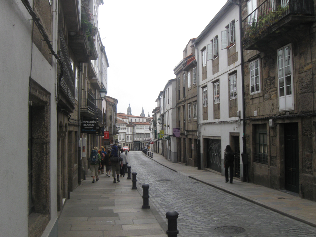 Ich habe beschlossen, dass heute mein letzter Tag der Reise eingetroffen ist und buche den Flug für den nächsten Morgen. Alle aus meiner Gruppe sind mehr oder weniger früh (Werner und Siggi verständlicherweise weniger) nach Finisterre ans Meer aufgebrochen. Ich bin überzeugt, dass meine Reise in Santiago enden muss und das Das Ende der Welt nicht dazugehört. Dies hier ist für mich nicht das Ende, sondern ein neuer Anfang. Ich möchte gerne später einmal nach Santiago zurückkehren und der Weg nach Finisterre laufen. Doch heute gehört der Tag der Stadt. Ich freffe den ganzen Tag Pilger die ich unterwegs getroffen habe, wir umarmen uns und freuen uns füreinander, dass wir angekommen sind. Ich besuche um 12:00 Uhr den Pilgergottesdienst, das Gefühl von Gestern kam nicht mehr auf - bis am Ende des Gottesdienstes der Botafumeiro geschwenkt wurde. Dies ist der größe Weihrauchkessel der Welt und wird von 8 Männern am Seil geschwungen, ein erhebendes Erlebnis. Ich habe mich dann von Santiago verabschiedet, die Stadt hat auch geweint als ich sie am nächsten Morgen verlassen habe (es hat geregnet) und jetzt beende ich diese Seite.